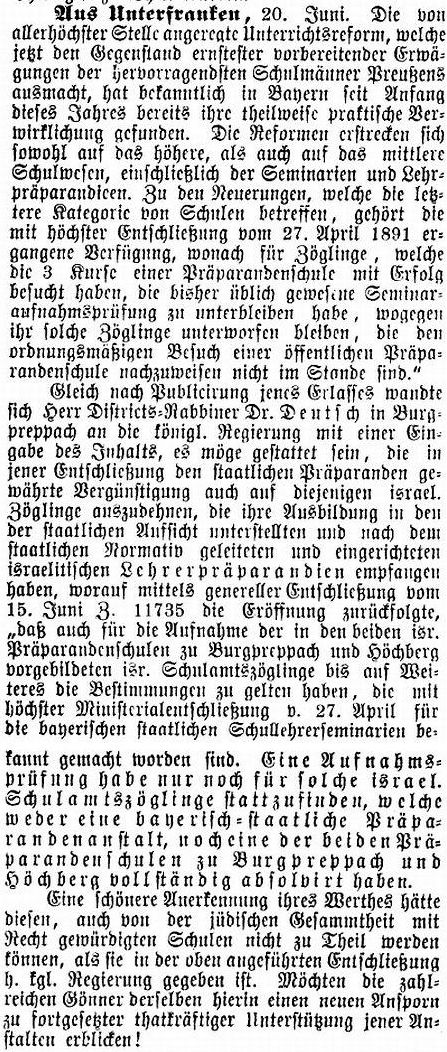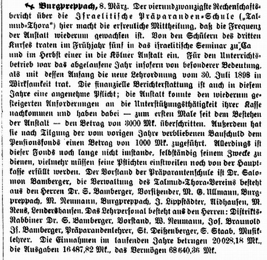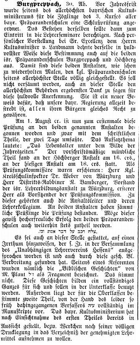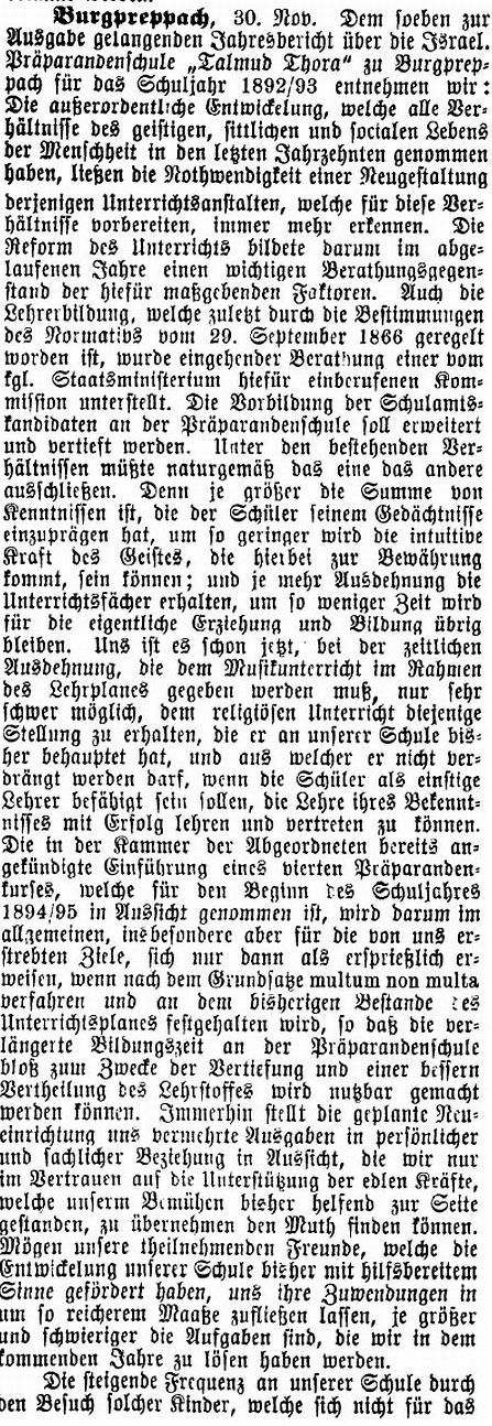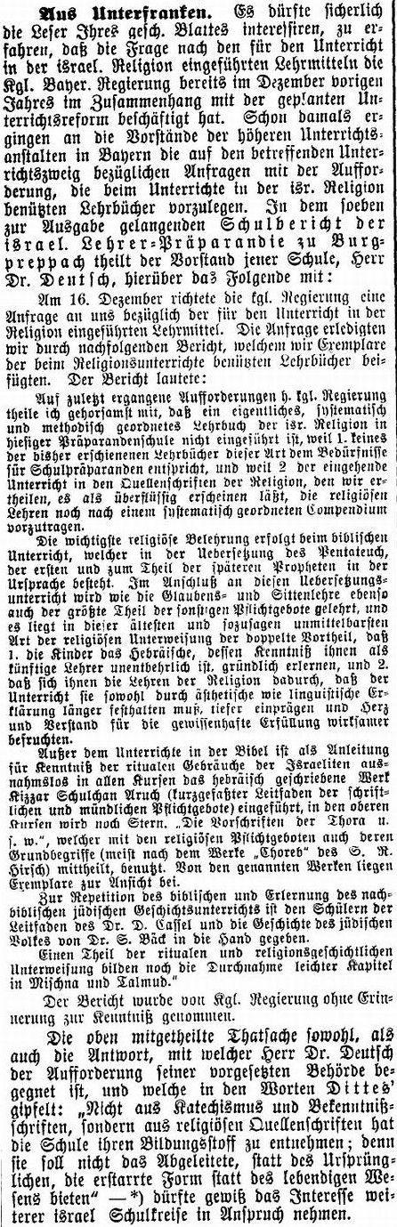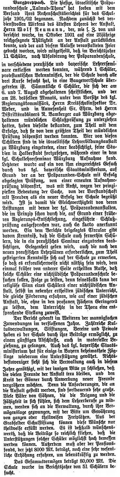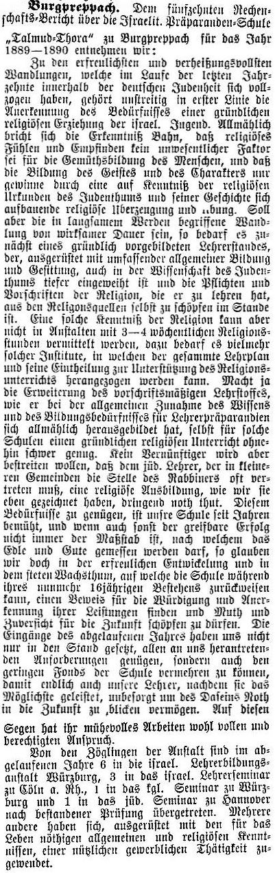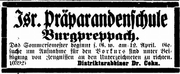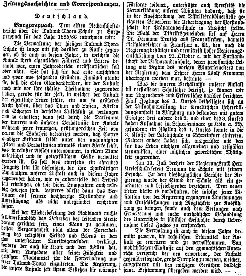 und Bürgerschule Talmud Thora Burgpreppach (Unterfranken). Für den