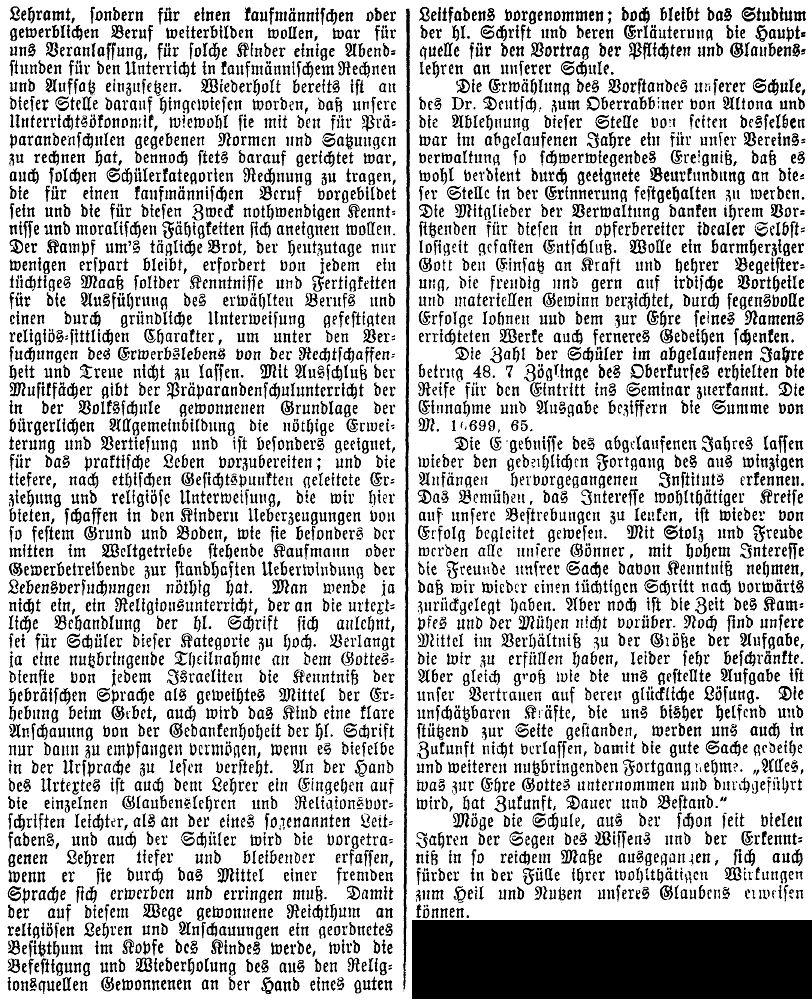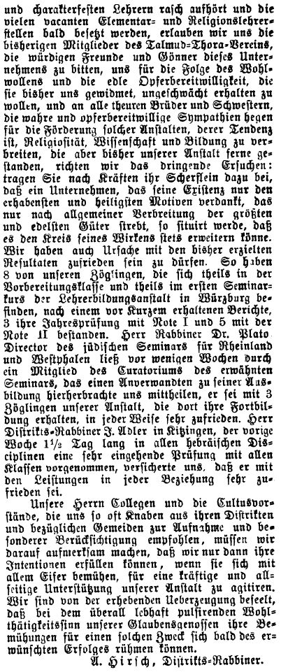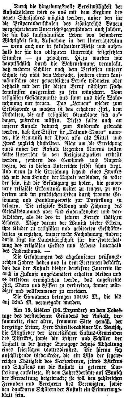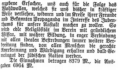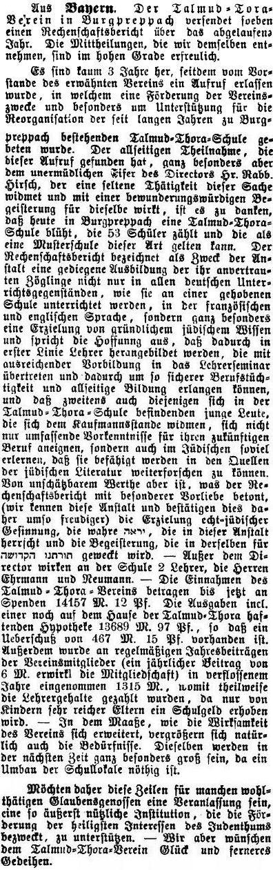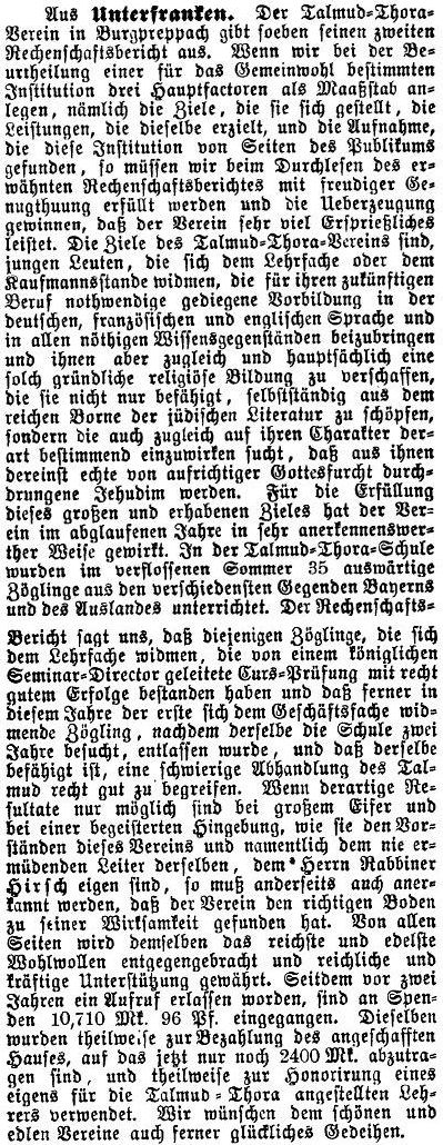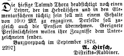 der Zeitschrift "Der Israelit" vom 21. September 1876: "Die hiesige Talmud