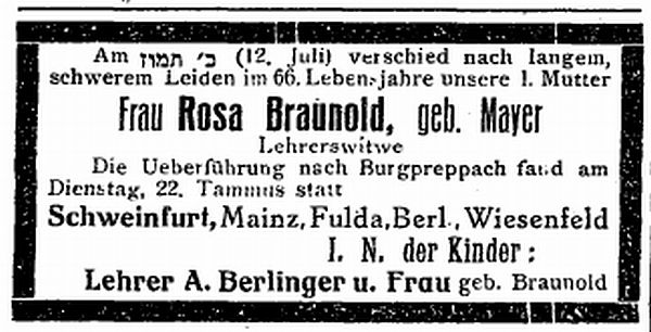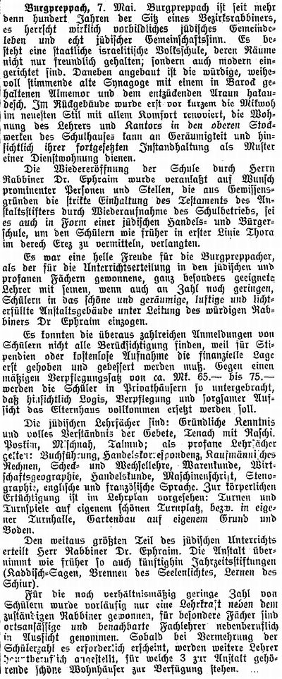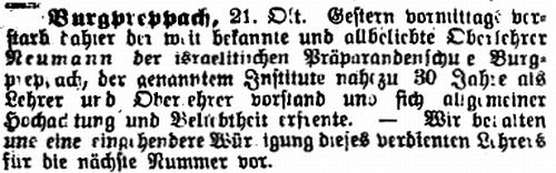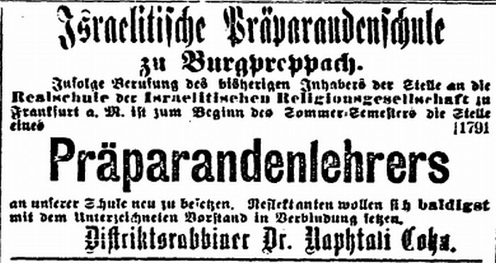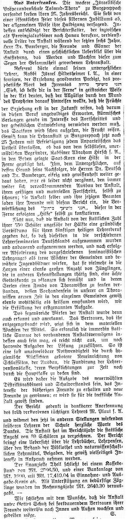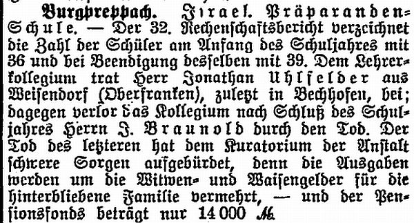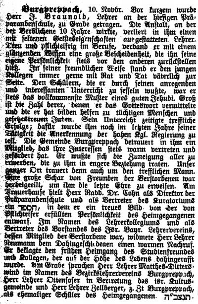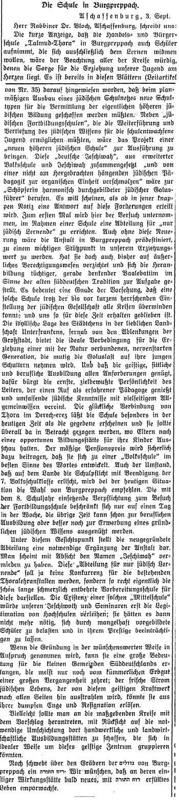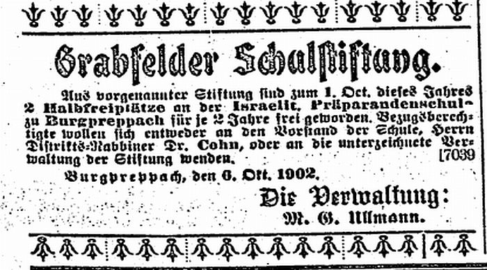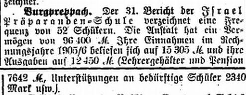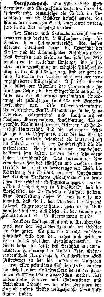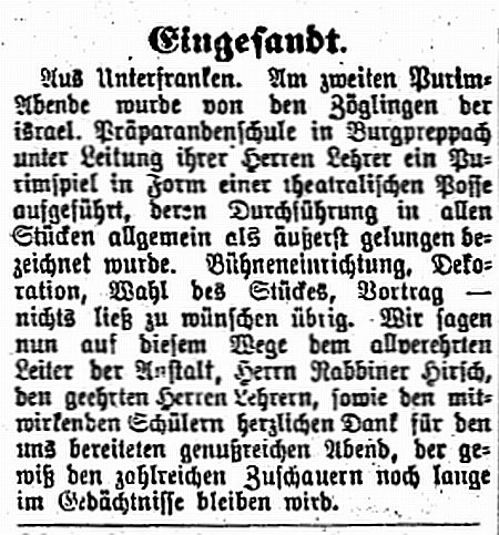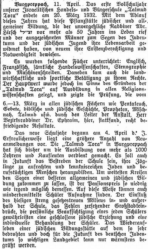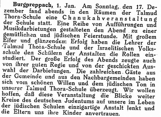 in der Zeitschrift "Der Israelit" vom 18. Januar 1934: "Burgpreppach,