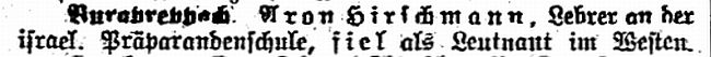 der Zeitschrift "Der Israelit" vom 18. Februar 1915: "Israelitische Präparandenschule