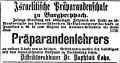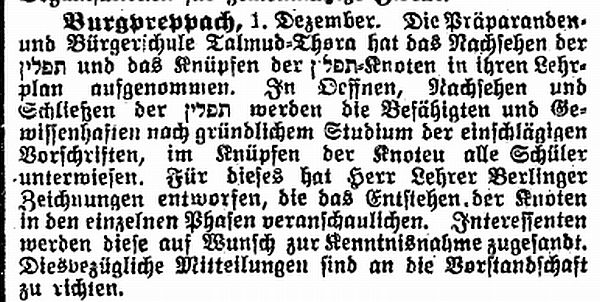 der Zeitschrift "Der Israelit" vom 16. Februar 1922: "Israelitische Präparanden-