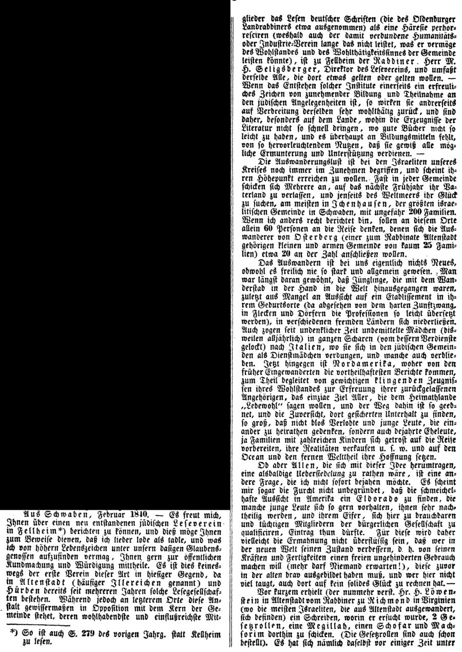 Fellheim / Schwaben. In: Der Landesverband der Israelitischen