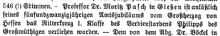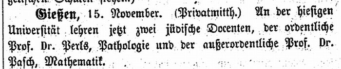 Dr. Moritz Pasch wird Professor der Mathematik in Gießen (1873)