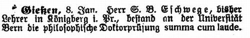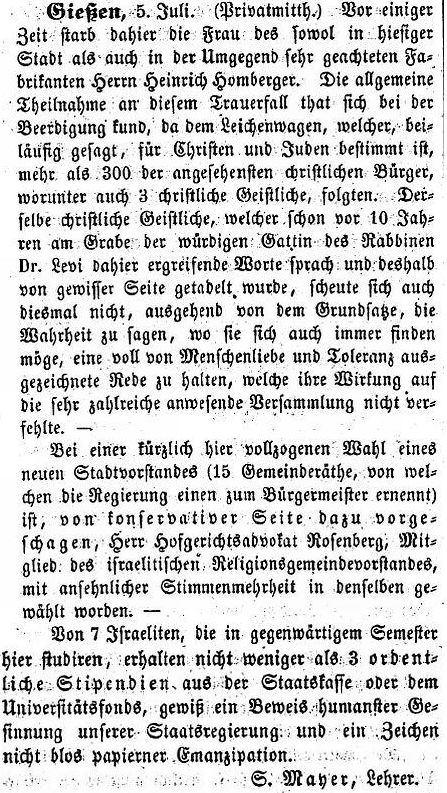 vom 19. Juli 1852: "Gießen, 5. Juli (1852). Vor einiger Zeit