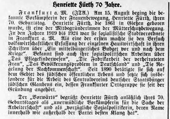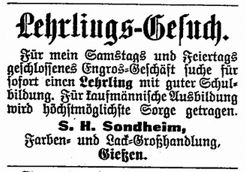 Anzeige im "Frankfurter Israelitischen Familienblatt"