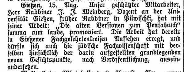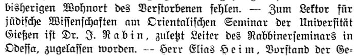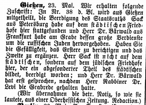 Beiträgen zur jüdischen Geschichte in Gießen wurden in jüdischen Periodika