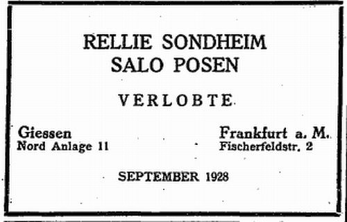 27. September 1928: "RELLIE SONDHEIM - SALO POSEN