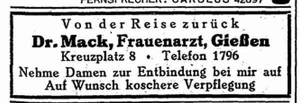 Anzeige von Frauenarzt Dr. Mack