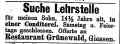 Anzeige in der Zeitschrift "Der Israelit" vom