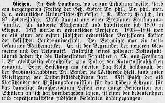 Privatdozent an der Universität zu Gießen, Dr. Moritz Pasch aus Breslau, ist