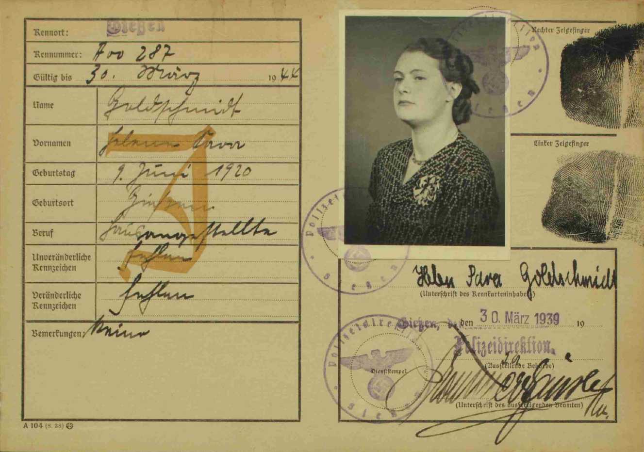 eingeführt. Die Kennkarten jüdischer Personen waren mit einem großen