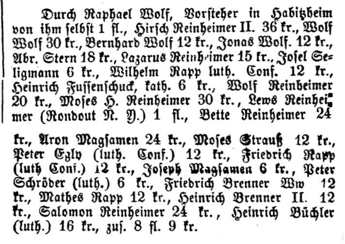 jüdischen Personen zur Gemeinde in Habitzheim. Seit der Mitte des 19.