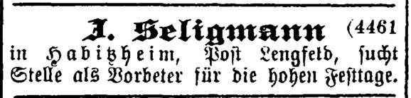 Habitzheim Lehrer Moses Strauß genannt (in "Der Israelit" 21.4.1869 S.