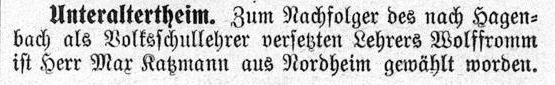 als hoch angesehener Lehrer in Speyer wirkte. Einer der letzten jüdischen Volksschullehrer in Hagenbach war Joseph Wolfromm, der 1909 auf