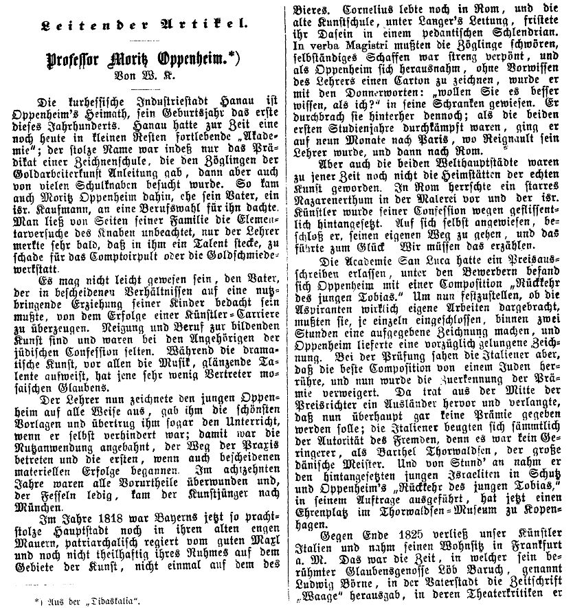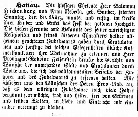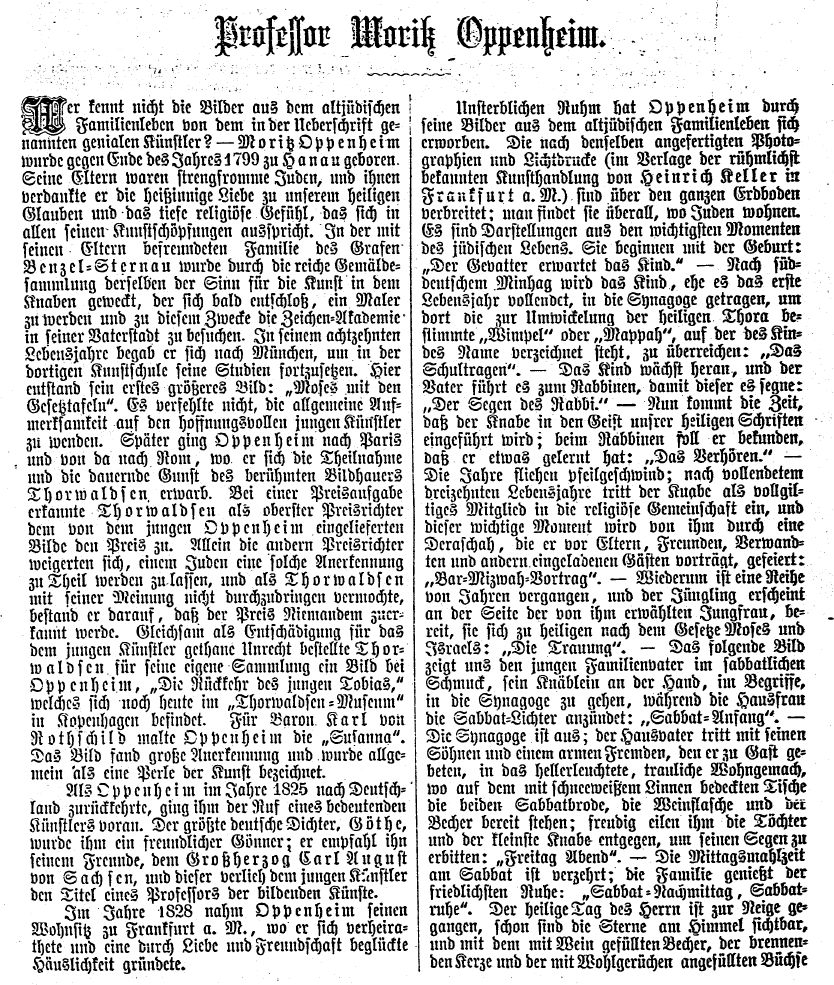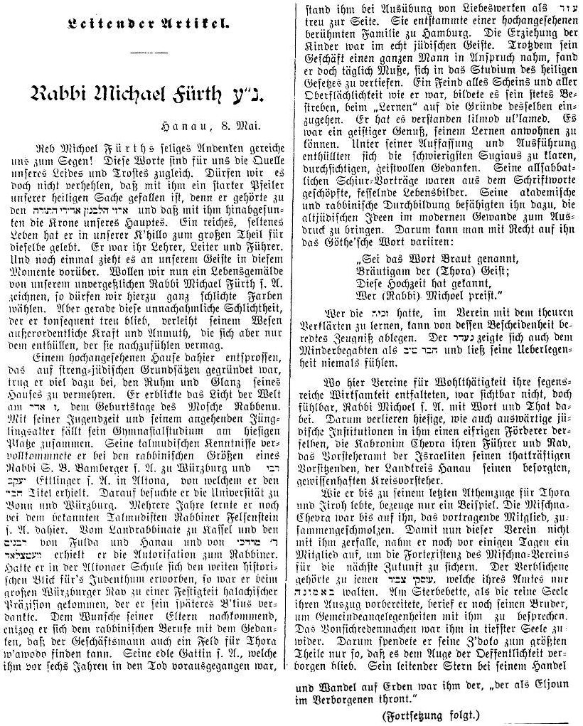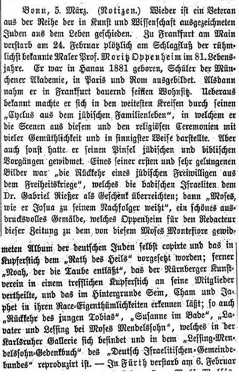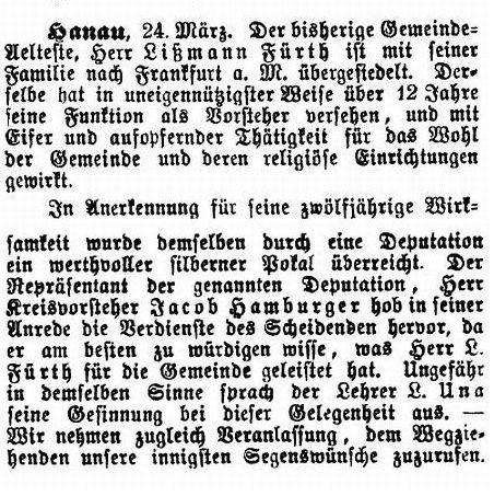 in der Zeitschrift "Der Israelit" vom 27. März 1872: Für mein