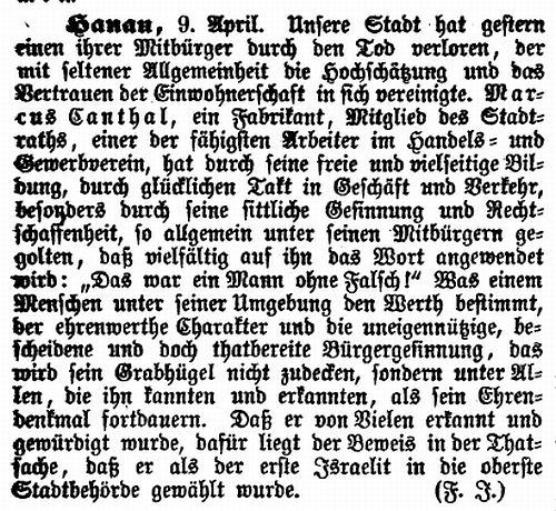 4. Mai 1864: "Hanau, 9. April (1864). Unsere Stadt hat