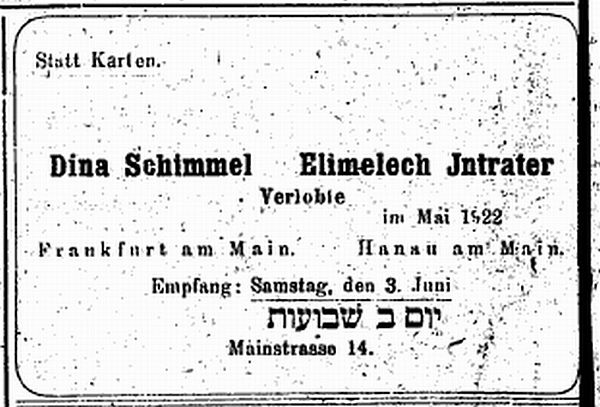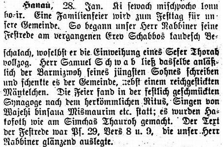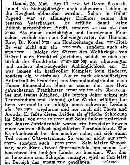 4. Juni 1936: "Hanau, 26. Mai. Am 13. Ijjar ist David