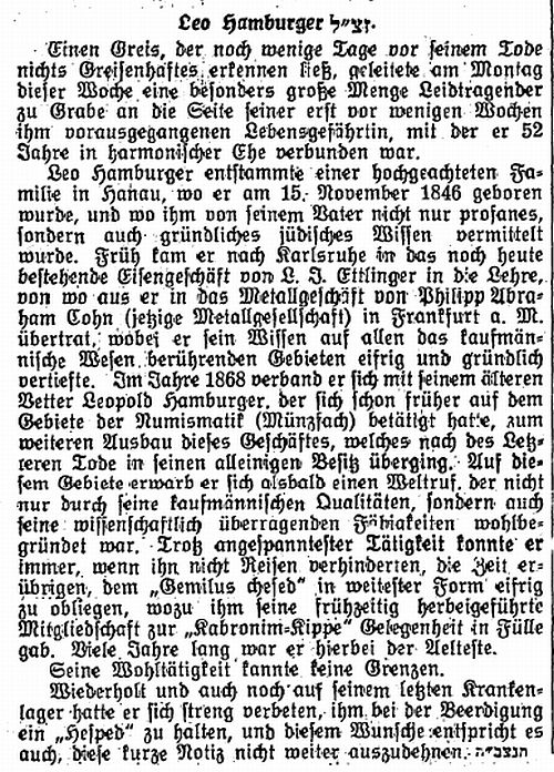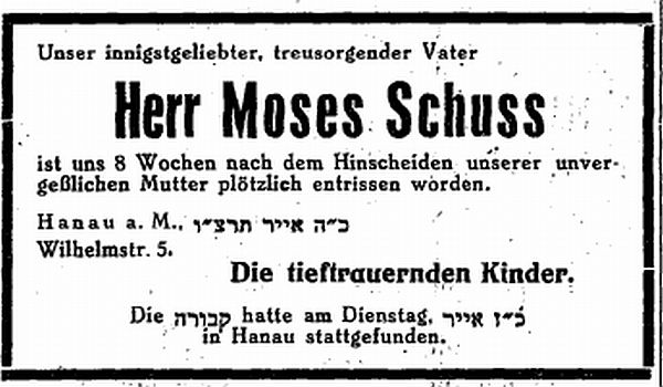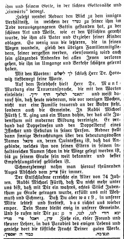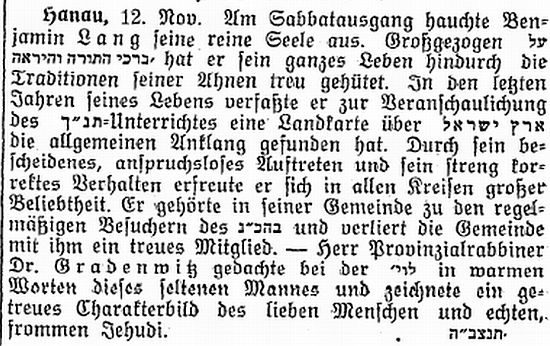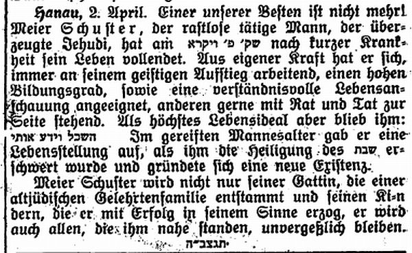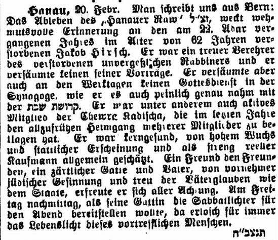 in der Zeitschrift "Der Israelit" vom 8. September 1898: "Schwarzschild