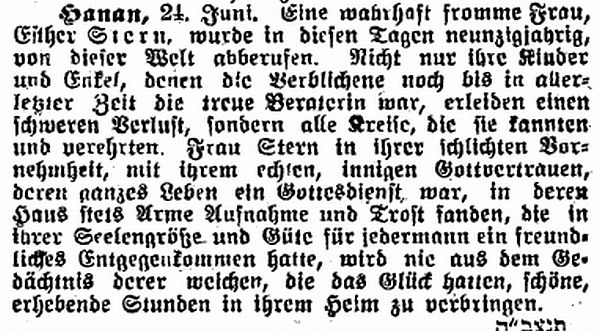 in der Zeitschrift "Der Israelit" vom 5. September 1898: