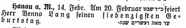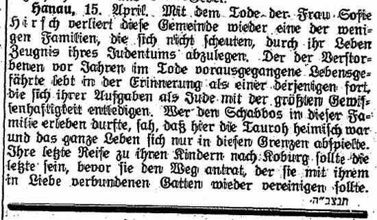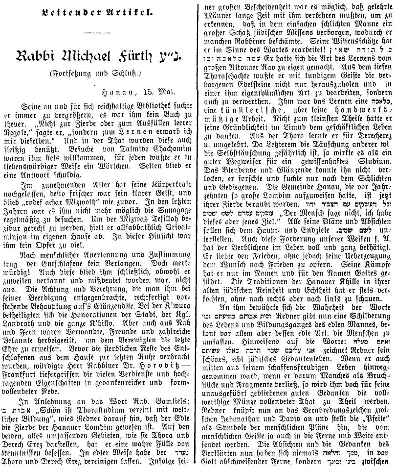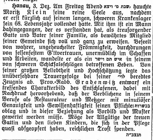 in der Zeitschrift "Der Israelit" vom 17. März 1904: "Für