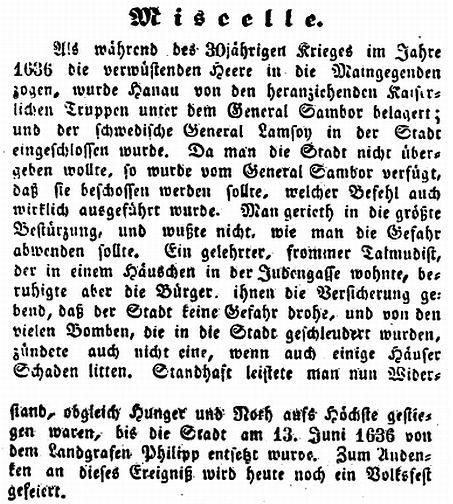"Miscelle. Als während des 30-jährigen Krieges im Jahre 1636 die