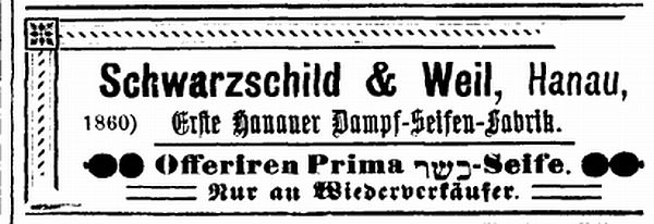 & Weil, Hanau. Erste Hanauer Dampf-Seifen-Fabrik. Offerieren