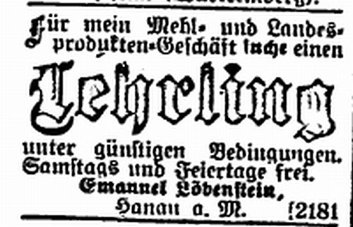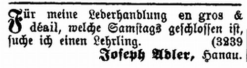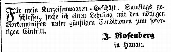 in der Zeitschrift "Der Israelit" vom 17. November 1869: "Lehrling