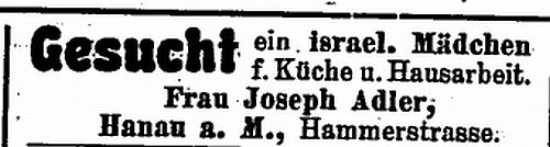 vom 14. Dezember 1906: "Gesucht ein israelitisches Mädchen