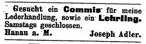 "Gesucht ein Commis für meine Lederhandlung, sowie ein Lehrling.