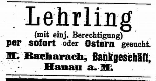 M. Bacharach, Bankgeschäft, Hanau am Main". |