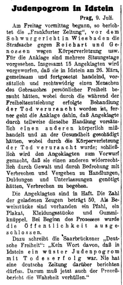 In Idstein bestand eine jüdische