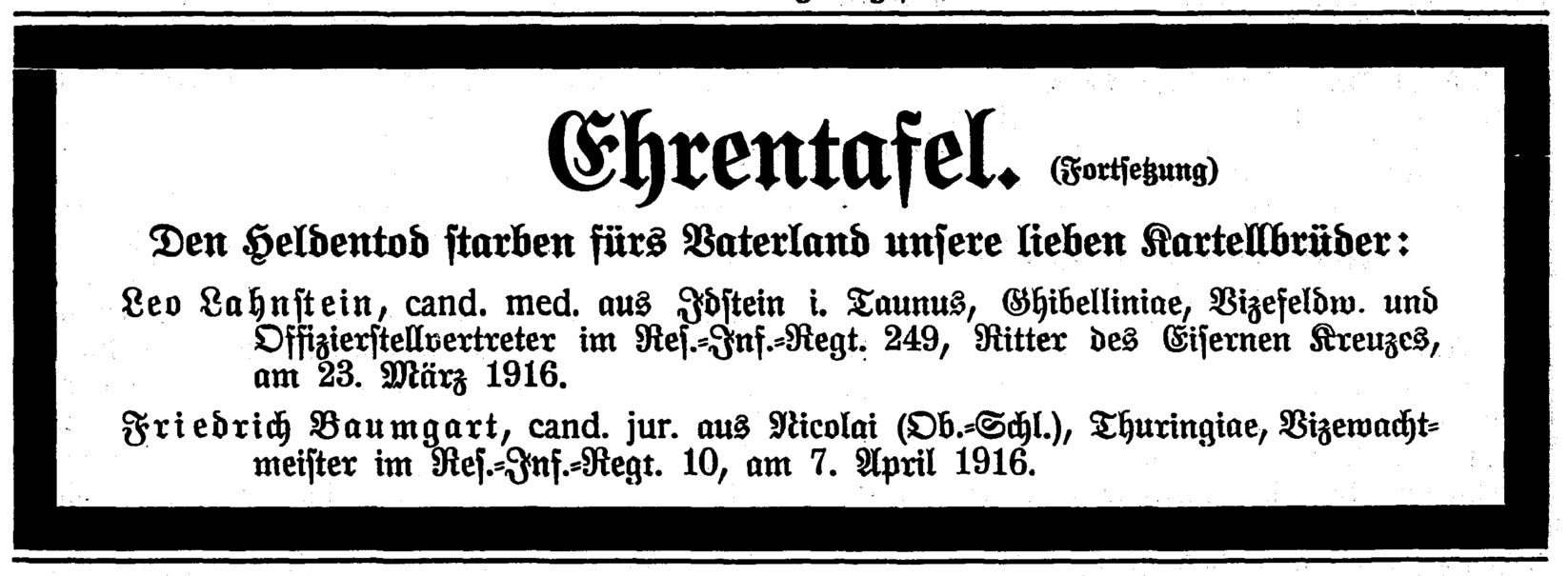 | Monica Kingreen: In wenigen Minuten war alles zerstört. Die Familie Lahnstein in Idstein und die Ausschreitungen beim Novemberpogrom 1938, in: Jahrbuch Rheingau-Taunus Kreis 2013, S. 99-103. |