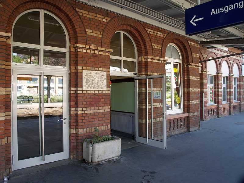 der Bahnhofsfassade kündet davon, was auf die November-Pogrome von 1938