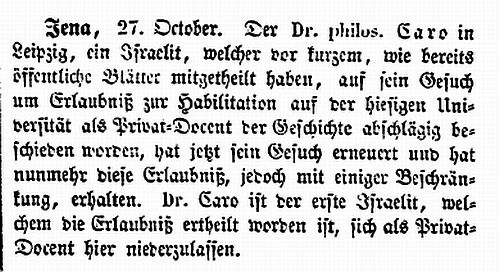 sein durfte, war der Historiker Dr. Jacob Caro (ab 1863, siehe