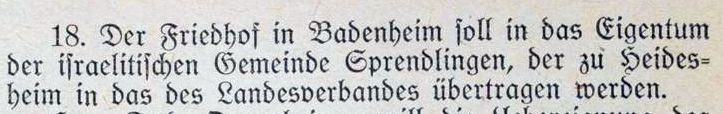 wurde beschlossen, dass der Friedhof in das Eigentum der israelitischen Gemeinde