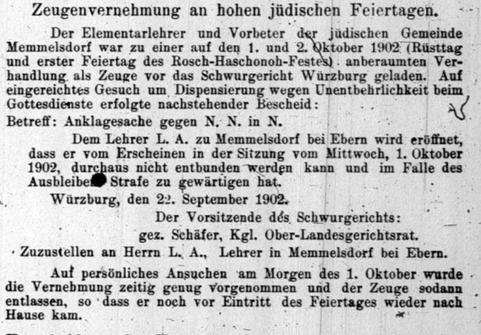 Berichte / Anzeigen zu Memmelsdorf aus jüdischen Periodika des 19./20. Jahrhunderts