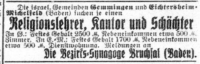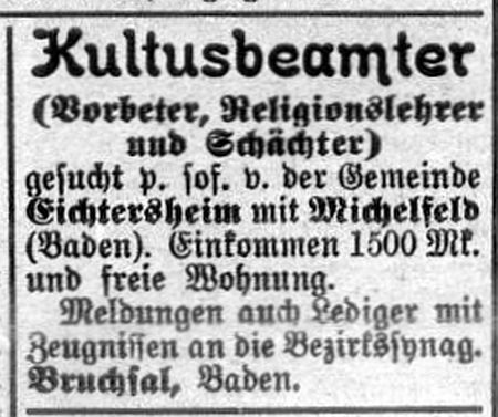 letzter israelitischer Volksschullehrer in Michelfeld, als Schochet