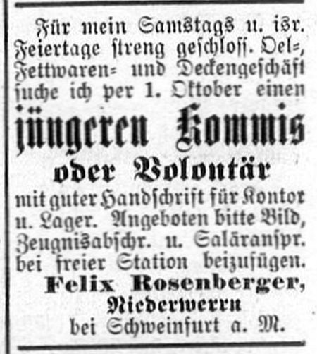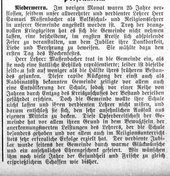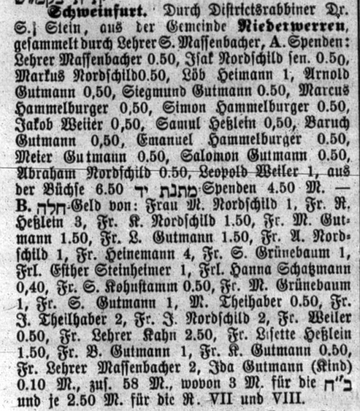 Niederwerrn wurde 1840 Sitz eines Distriktsrabbinates. Rabbiner Mayer