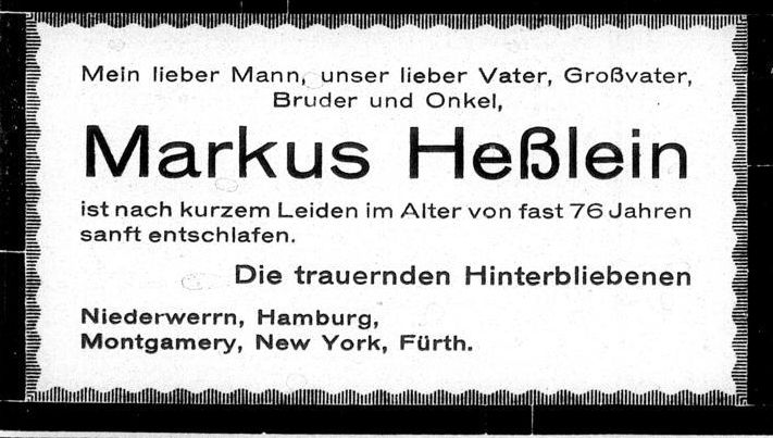 1934-40, 39 Jews left Niederwerrn, 21 emigrating (including 12 to the United