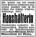 Anzeige in der Zeitschrift "Der Israelit" vom 21. Oktober 1920: "Für meinen aus drei erwachsenen Personen bestehenden frauenlosen Haushalt sucht ich für alsbald eine tüchtige, erfahrene, selbständige, ältere