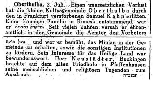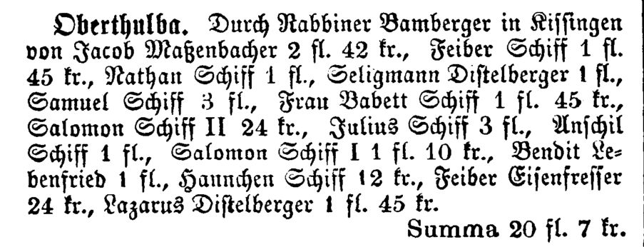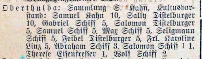 mehr. 1699 lebten zwei jüdische Familien in Oberthulba (Samuel und Jacob). Mitte