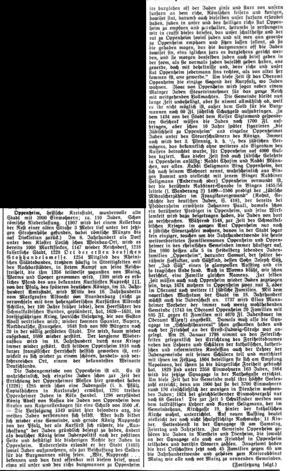 Judenverfolgung während der Pestzeit auch die Juden Oppenheims erschlagen.