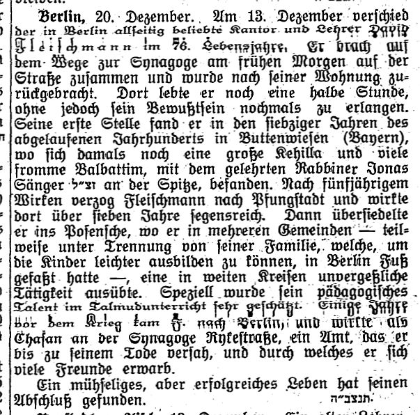 Fiebermann (1869), Julius Fleischmann (1884), Selma Fleischmann geb. Loeb