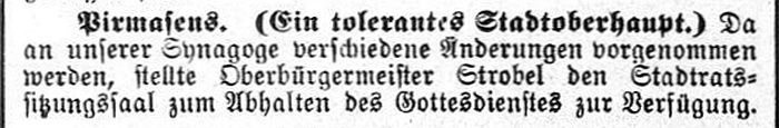 Pirmasens: zunächst unter Bezirksrabbiner Dr. Eugen Meyer, danach unter Rabbiner