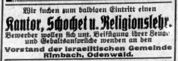 eigenen jüdischen Lehrer mehr in Rimbach.