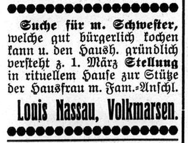 (zugleich als Synagogendiener tätig), um 1892/94 S. Nathan (gleichfalls als