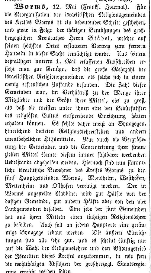in der Zeitschrift "Der Orient" vom 13. Juni 1840: "Worms, 12. Mai