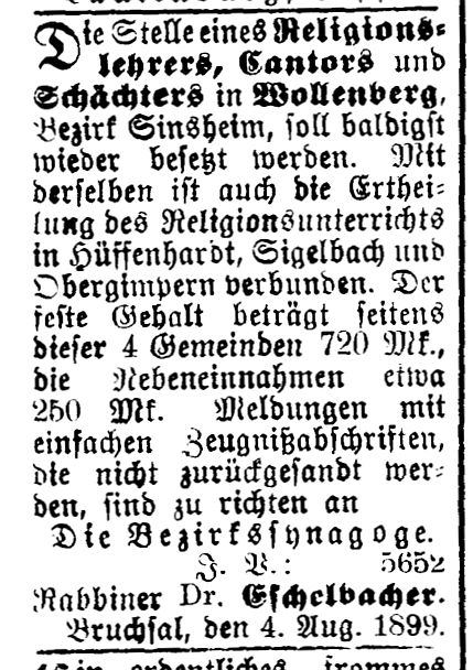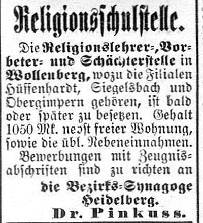 ein Religionslehrer angestellt, der zugleich als Vorbeter und Schochet tätig war.
