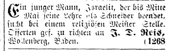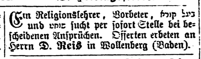 Rothschild, um 1887/1898 Lehrer Emanuel Reis